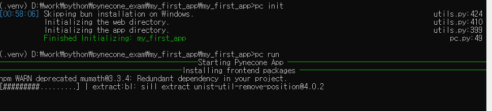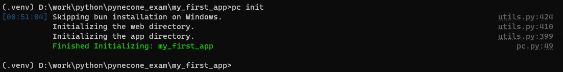 pynecone 명령줄 도구인 pc 도 설치가 되었을겁니다.