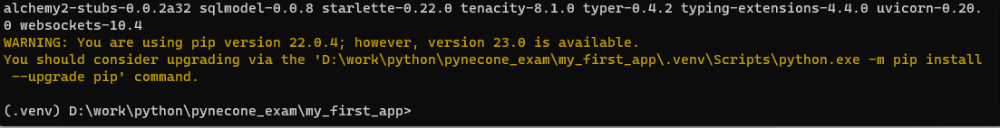 설치가 완료되면 pip 버전때문에 아래와 같이 경고 문구가 나오는 경우도 있습니다.