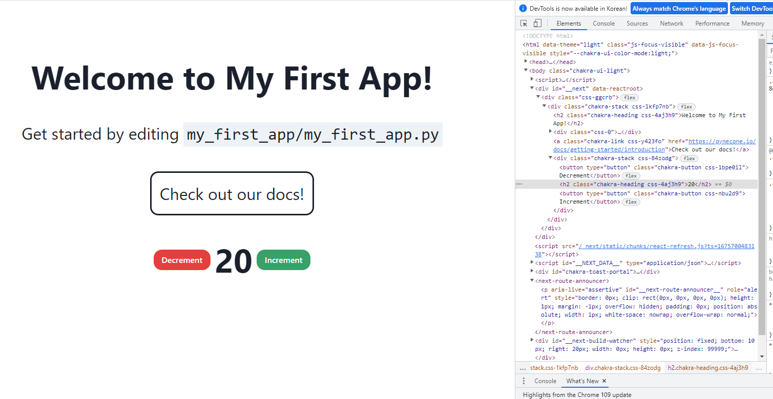 저기서 "Welcome to Pynecone!" 문구를 아래와 같이 변경해 보세요.